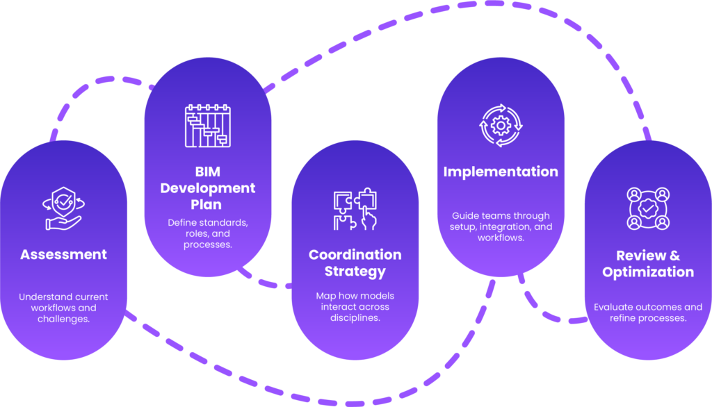 Defining BIM workflows, clash detection strategy, modeling guidelines, and LOD specifications for architecture & construction teams.